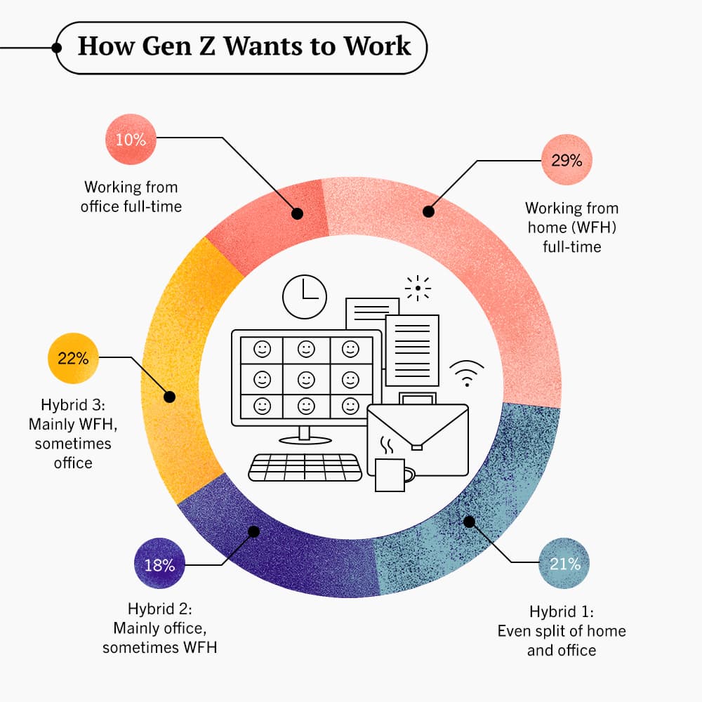 For starters, the 9-to-5 might soon cease to exist. As far as Gen Z is concerned, the traditional office belongs in a museum and people should have the flexibility to work wherever and whenever they please.