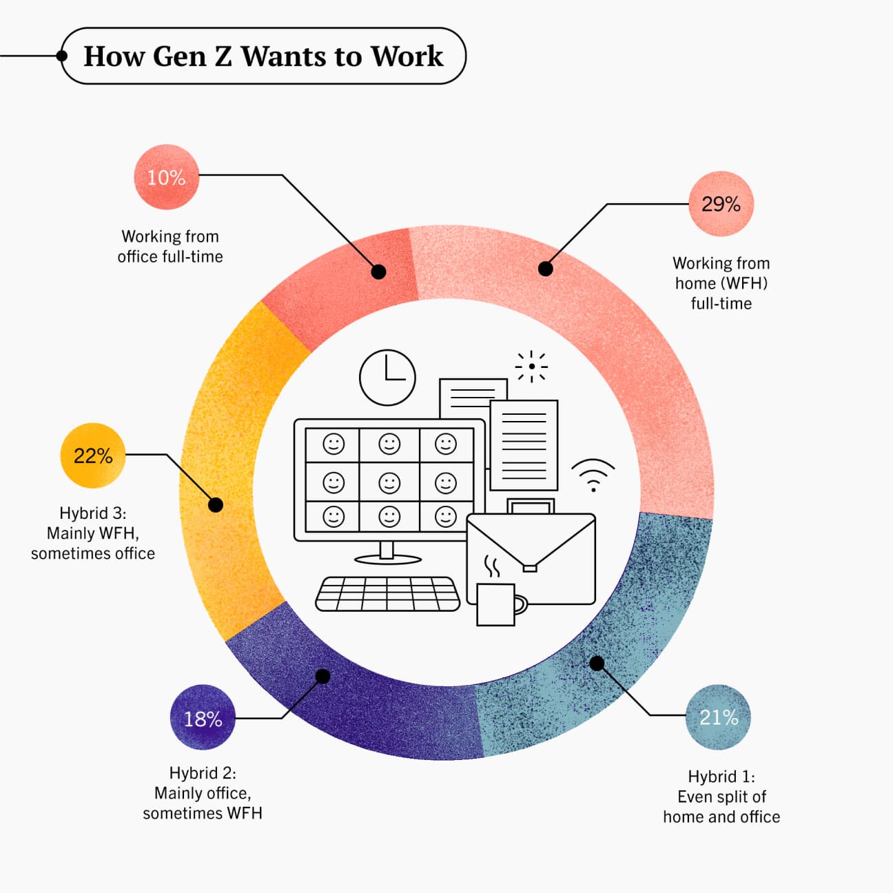 Sources: Citrix, Deloitte, Harvard Business Review, McKinsey, Monster, Pew Research Center, SurveyMonkey